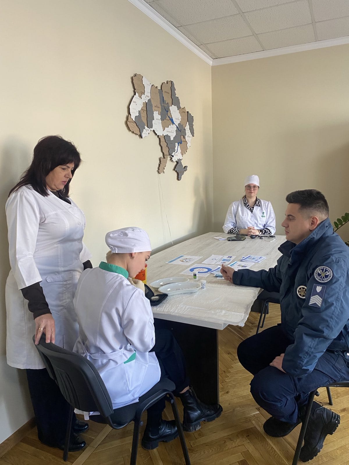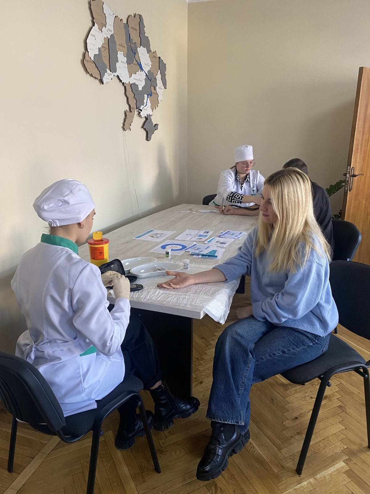 Студентами четвертого курсу Чемеровецького медичного коледжу було проведено забір крові на глюкозу в крові та вимірювання артеріального тиску в судів, працівників апарату суду та судової охорони.